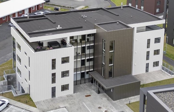 uppsteypt fjölbýlishús með bílakjallara. steypt þakplata, sjálfstætt loftræstikerfi í öllum íbúðum.