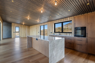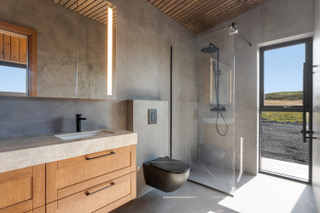 Viðhaldsfrí stuðlabergs álklæðning, áltré gluggar, niðurlímd gólf, gólfhit, massíf eik innaná útveggjum, microsement steypuveggir að innan. Sérsmíðaðar innréttingar hannað af Guðsteini og Guðlaugu.