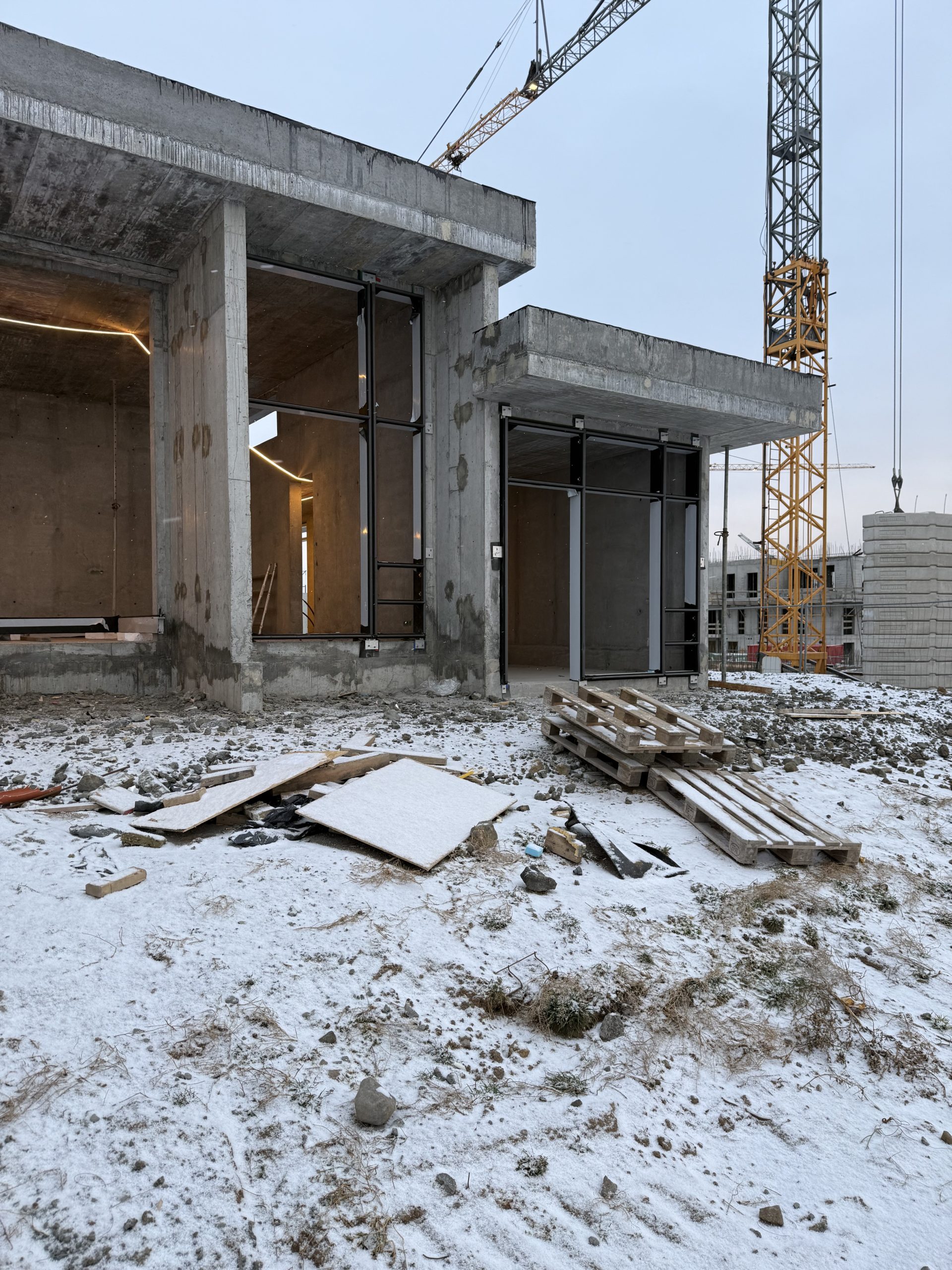 uppsteypt einbýli á einni hæð með steyptri þakplötu, einangrað og klætt að utan, hönnun er öll aðlöguð að nútíma þægindum.